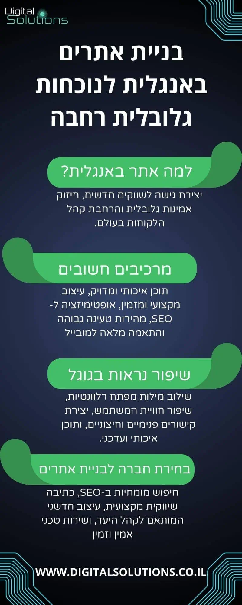 דגשים ונקודות מרכזיות לבניית אתרים באנגלית
