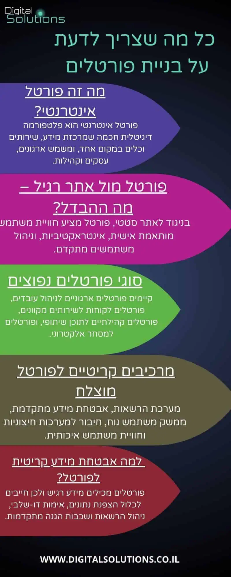 | סוג הפורטל | תיאור | יתרונות | אתגרי פיתוח |