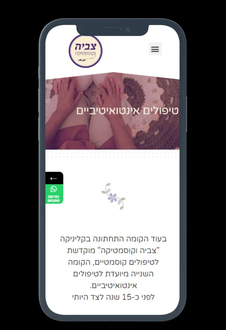 הקליניקה של צביה קיימת כבר שנים רבות והוחלט להקים אתר שייצג אותה בכבוד, תוך הצגת השירותים והמוצרים לרכישה אונליין. נערכו ימי צילומים בכדי למלא את האתר בכל טוב ולאפשר גם לגולשים שלא נמצאים ברמת גן וסביבתה להכיר אותה טוב.
