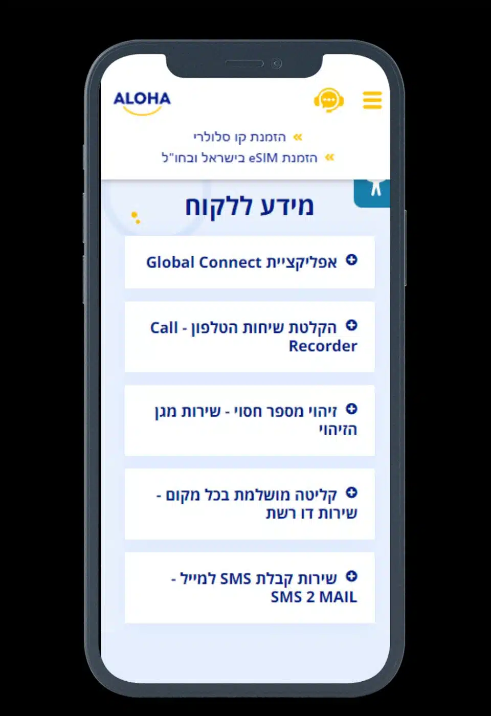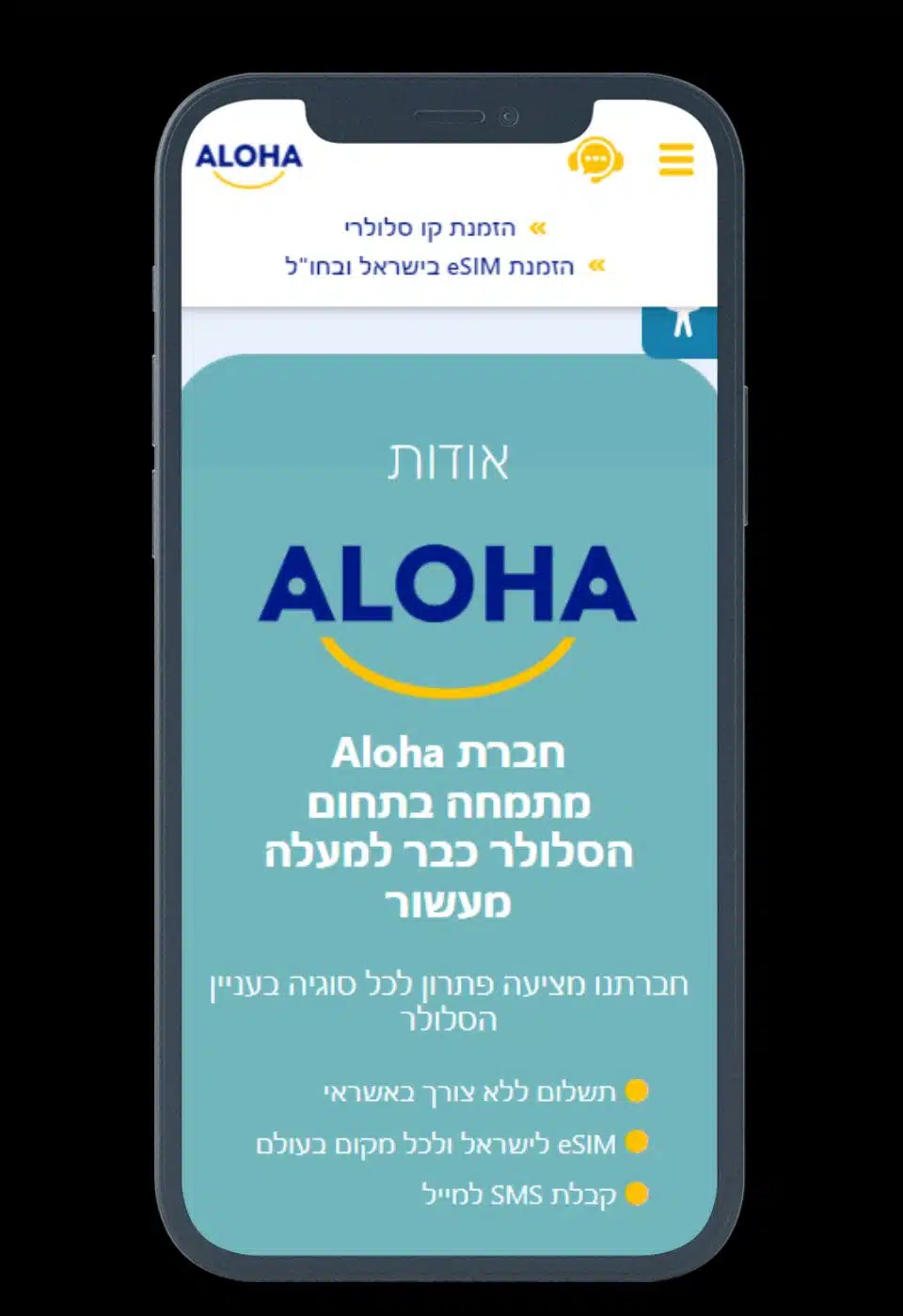 הקמת אתר עם כל המידע והמבצעים אודות חבילות התקשורת והסלולר של חברת Aloha. מדובר בחברה חדשה ולכן הפרויקט כלל גם יצירת לוגו, בחירת שפה גרפית ושפת מותג שתלווה אותו בכל שלוחותיו בדיגיטל.